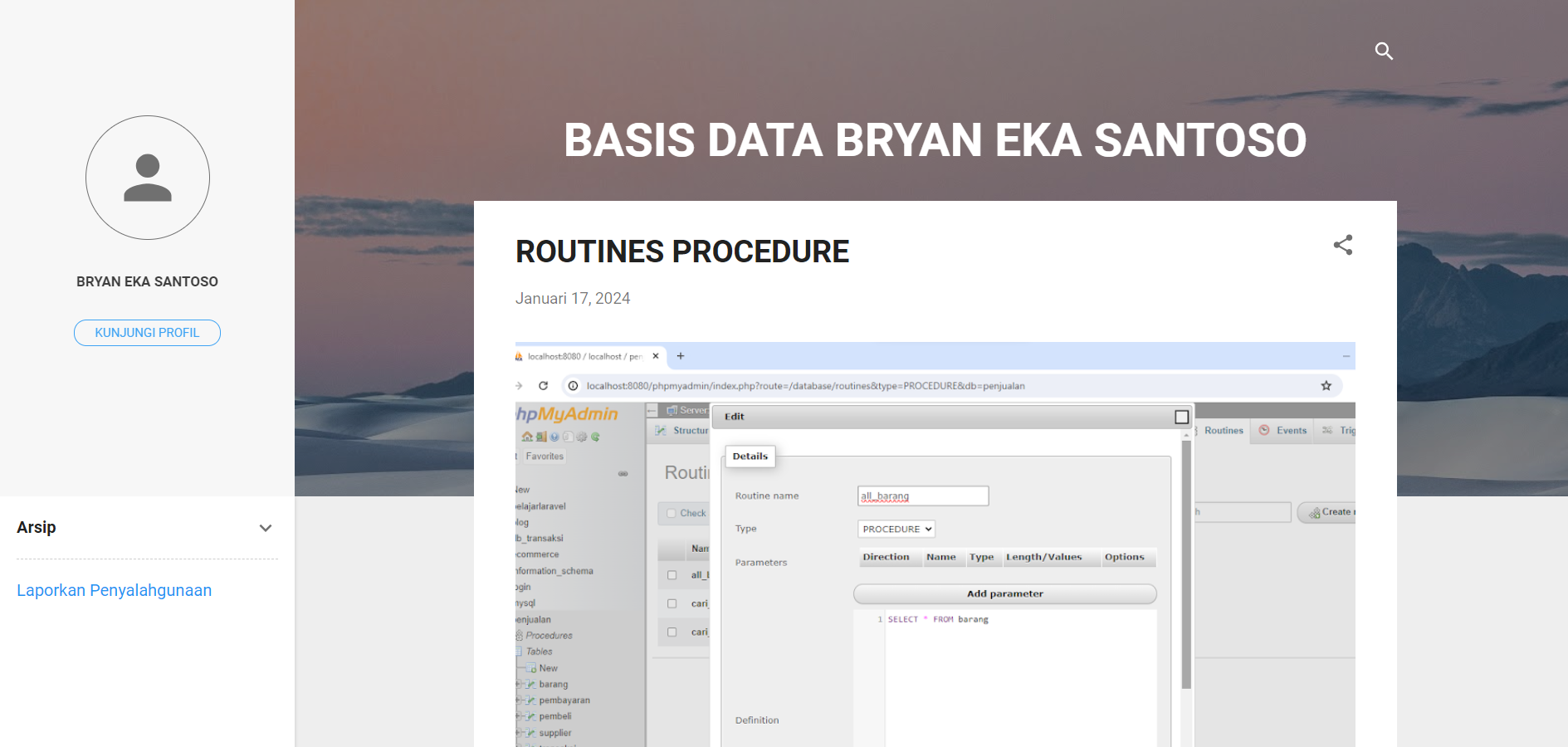 Saya mengerjakan proyek aplikasi peminjaman barang sebagai Insinyur Basis